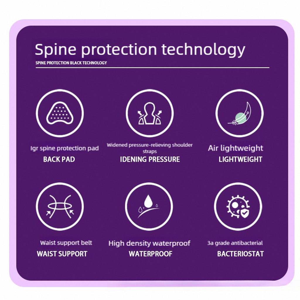 Hollow Spine Protection: Central back hollow structure ensures ventilation and protects the spine from hard pressure while walking.